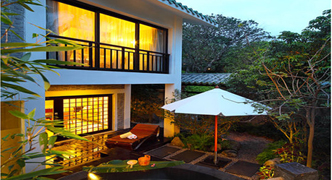 | ヴィラ部屋:1部屋ごろに区切られた庭にプライベート露天温泉風呂をご用意。 |