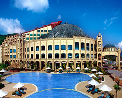 位置:三亜亜龍湾エリア 亜龍湾国家リゾー エリアに位置して、 山を背に亜龍湾に面するアフリカ情緒をテーマとした城保式リゾートホテルです。ホテルから、 プライベートビーチ まで 僅か2分 。中華料理レストラン、洋式レストラン、ビール広場、ケーキ屋など が揃っていて 、亜龍湾エリア外資系ホテルのレストランより手ごろな価格でグルメを満喫できるホテルです。当ホテルは三亜で相当の規模のある大劇場を有し、53、54、55、57回ミスワールドコンテストの才能コンテストもこの劇場に行われました。夜には“火鳳凰”という大型舞台劇が上演されています。 |