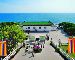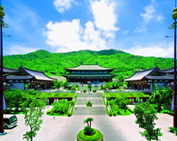 三亜市内より車で40分程に位置し、中国一番南の山で“南山”と名づけられた。南海に面し、海、山がうまく調和し、大自然の清祥地である。唐の時代、鑑真大和尚は日本へ渡航している途中、台風に遭遇し、南山まで漂着したことがあり、ここで一年半も仏教及び本土技術等広く伝えた。日本“遣唐僧”の空海大和尚(弘法大師)も中国の長安(今の西安)へ受戒するために、渡航している途中南山に漂着したことがある。仏教弟子はここで南山との縁を結びつけた。仏教経文によると、観音様は12種の念願があり、その2番目は“南海に居住する願”だそうだ。南山仏教文化苑は敷地面積約50平方キロメートル、そのうち海域面積は10平方キロメートル、仏教文化をテーマとする、ヨーロッパ、日本の造園芸術を取り入れ、生態環境の保護を重視し、仏教寺院、海浜公園、レジャー用別荘などから成る大型海浜公園です。2005年4月海上小島に建てれた高さ108メートルの海上観音菩薩像は雄大の奇観で観光客を魅了させます 。 |