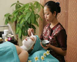 女性にはJAVANESE LULURケア。これはインドネシアの伝統的なボディーケアです。花エキス粉とビャクダンを使い、優しくマッサージ肌を柔らかくし、肌質を改善する。又、冷やしたヨーグルトを以って柔らかい皮膚に栄養を与えてくれます。