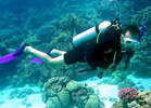 A体験ダイビングコースには8歳以上、ファンダイビングコースには12歳以上、健康な方はダイビングできます。